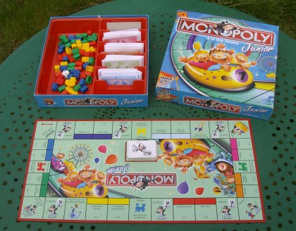 Monopoly junior - À la fête foraine est l'adaptation, plutôt réussie, du fameux Monopoly, qui ne dépaysera pas les parents, habitués à la version originale. La piste de jeu représente une fête foraine. Le but est d'acquérir des attractions, en espérant ruiner les adversaires en manèges et barbes à papa. On ne peut pas acheter de pass journalier !