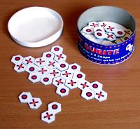 Le jeu est constitué de 30 dominos au format caractéristique des jeux Alvéole. Chaque domino porte une croix et un point. La règle tient en quelques mots :