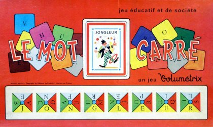 Particulièrement friand de jeux en formule duplicate, c'est avec grand plaisir que j'ai découvert, au hasard d'un vide-greniers, le jeu Le Mot carré de Volumétrix. Ce plaisir, j'ai décidé de le partager avec les lecteurs de l'Escale à jeux, en leur offrant la possibilité de se fabriquer le jeu assez facilement.