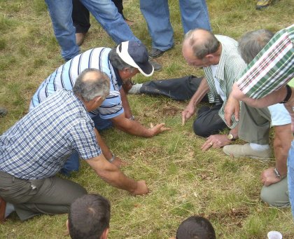 La Mourre est un jeu très ancien. On en parle même dans des textes datant de l'antiquité. Le principe est basé sur le hasard induit. Pas de générateur de hasard, donc, celui-ci provient du fait que tous les joueurs participent ensemble à la détermination de la valeur à découvrir, sans pouvoir connaître ce que les autres vont faire. L'idée directrice est proche de celle de Pierre-Feuille-Ciseaux. La version la plus classique se joue à deux. Chacun montre en même temps un nombre de doigts en annonçant un total. Si un joueur trouve le total, il marque un point. |