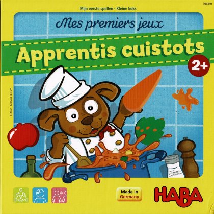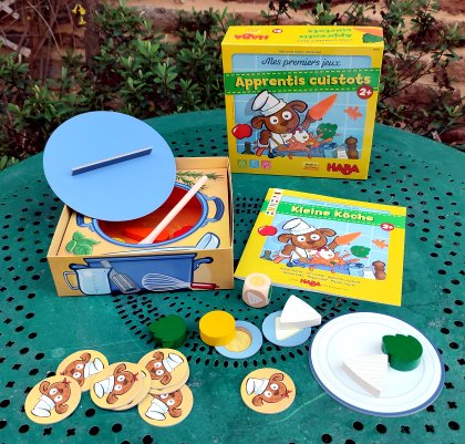 Mes premiers jeux - Apprentis cuistots se présente sous la forme d'une marmite dans laquelle on va pouvoir cuisiner des légumes. Vegans, bienvenus ! Plusieurs règles sont proposées et le jeu libre encouragé. Il s'agit plus d'un matériel permettant diverses activités que d'un véritable jeu de société.