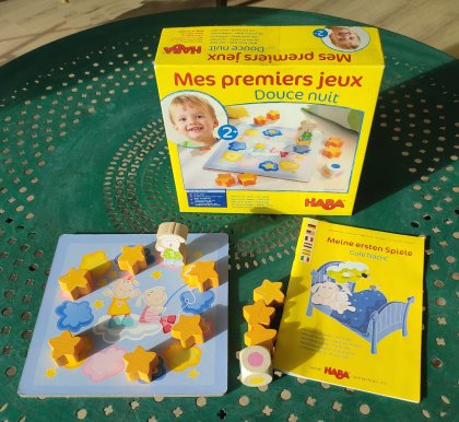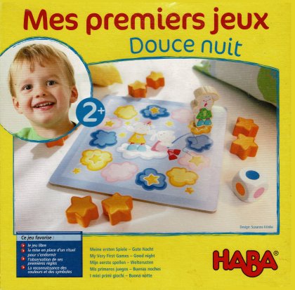 Destiné aux tout petits, Mes premiers jeux - Douce Nuit propose deux jeux de dés de pur hasard, une variante solo (ou coopérative) et une petite histoire.
