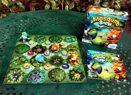 Mosquito Show est publié par The Flying Games, comme Jurassic Snack, Ice Team ou Little Big Fish. Et comme tous ces jeux, il est doté d'un matériel magnifique. Ici, ce sont des toucans et des caméléons qui se disputent de délicieux moustiques pour leur déjeuner. Pour gagner, il faut soit manger 9 moustiques dorés (les plus savoureux paraît-il) avant son adversaire, soit bloquer celui-ci. Un animal est bloqué lorsqu'il ne peut pas se déplacer ou qu'il ne peut pas manger. Le double but du jeu donne tout son intérêt à Mosquito Show. Une légère part de hasard existe, puisque tous les moustiques ne sont pas visibles, mais elle est très réduite. Facile à apprendre mais pas si facile à maîtriser.