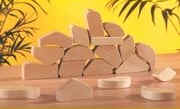 Le Mur maudit est un successeur réussi de Badaboum !. La petite boîte est bien remplie : vingt-cinq blocs en bois de hêtre aux contours torturés, qui ont tous la même épaisseur de 12 mm.