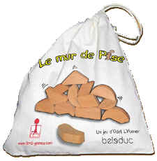 chance d'y jouer chez l'auteur, et j'ai donc pu lui demander des précisions… mais je n'en sais toujours pas plus En fait, la règle prévoit que le joueur qui fait tomber des blocs, les prend, mais repose l'un d'eux pour prolonger la base du mur qui passe à cinq blocs, puis six etc. On n'est pas obligé de suivre cette règle mais avec de jeunes enfants, le mur est de plus en plus long, donc il est de plus en plus facile de construire, ce qui n'est pas plus mal. Les joueurs chevronnés se laisseront facilement prendre à ce petit jeu d'équilibre. Rapidement, ils repéreront quelques pièces particulièrement tordues qui sont toujours amusantes à poser avant le tour du joueur suivant. 2005 : Le Mur de Pise chez Ferti