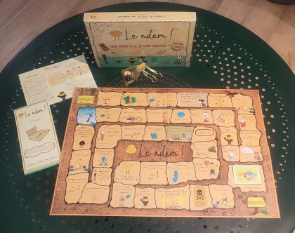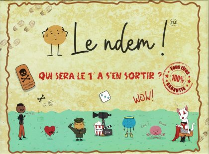 Ndem (nom masculin, camfranglais Conçu au Cameroun, Le Ndem ! est un jeu de parcours et d'ambiance où le plus important n'est pas de gagner mais de passer un bon moment ensemble, petits et grands. Le hasard du dé vous amène sur des cases qui imposent des gages variés : répéter une phrase imprononçable, faire un compliment, modifier les places des pions, mimer un hula hoop, faire un peu de gymnastique, etc.