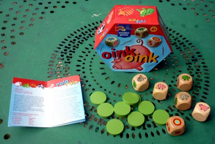 Oink Oink (alias Roin Roin) est un jeu de réaction rapide. Le résultat des six dés indique quel animal il faut imiter. D'où le titre du jeu, censé représenter le cri du cochon ! Chacun sait pourtant que le cochon fait « groin groin » et non « roin roin ». La règle est d'ailleurs aussi mal traduite que le cri du cochon. Pour information, les Anglais, Allemands et Espagnols jouent à « oink oink », les Italiens à « oin oin », les Portugais à « ronc ronc » et les Grecs à « óινκ óινκ ».
