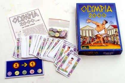 se gagnent à la fin de l'épreuve. Chaque carte représente un sportif, plus ou moins doué dans cinq types de compétition. Tout l'art est de jouer le bon sportif au bon moment, de ne pas gâcher une bonne carte parce qu'un autre en a mis une meilleure. À vous de deviner ce que vont jouer les autres, puisque tout est déterminé en simultané. C'est à la fois l'intérêt et la limite de Olympia 2000 (v. Chr.). Et le vieil adage est souvent respecté : « Plus ça va mal, plus ça va mal » ! |