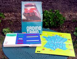 Les joueurs doivent mener leur locomotive vers dix destinations étrangères. Les réseaux sont formés de suites de 1 ou de 0. Les dés spéciaux ne comportent que des 1 et des 0. On jette les trois dés et si par exemple ils indiquent 1-1-0, on peut emprunter des voies répondant aux combinaisons 0-1-1, 1-0-1 ou 1-1-0. Dans le premier et le dernier cas, on peut tout à fait emprunter une voie 1, et y faire un aller retour. L'un des trois dés comporte en plus une face rouge et une face verte, permettant de placer des feux rouges pour restreindre les déplacements adverses ou au contraire des feux verts pour libérer la voie. Une curiosité très datée. |