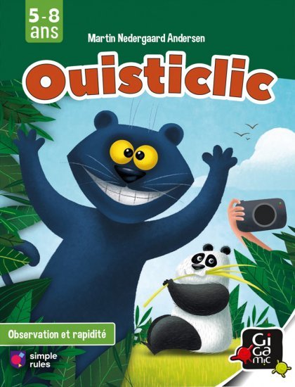Ouisticlic est un jeu de bouchons et totems, où il faut faire preuve d'observation et de réaction rapide. Chaque joueur possède une galerie où sont exposés des animaux que chacun peut prendre en photo. Au centre de la table, se trouve une réserve commune où chacun peut attraper des animaux pour les mettre dans sa galerie. Lorsque les dés sont lancés, il faut vite trouver un animal présenté sur une face d'un dé et placer sa main dessus. Un animal ainsi capturé dans la réserve commune ou dans la galerie d'un concurrent rejoindra votre galerie. Et si vous recouvrez une carte de votre propre galerie, l'animal vous est définitivement acquis et retourné côté photo. L'astuce consiste à la fois à réagir vite et à réagir intelligemment : est-il préférable de voler un animal ou de photographier un des siens ? Comme on n'a pas quatre bras, il faut choisir. Et bien choisir. Une règle simple mais très astucieuse pour un jeu très interactif.