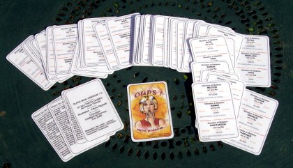 Oups mon prénom est basé sur les devinettes Monsieur et Madame. L'auteur a regroupé dans son jeu de cartes plus de 300 devinettes en forme de « Monsieur et Madame », avec en plus trois indications : la nationalité du prénom, le sens de lecture, et un indice permettant de trouver le prénom.