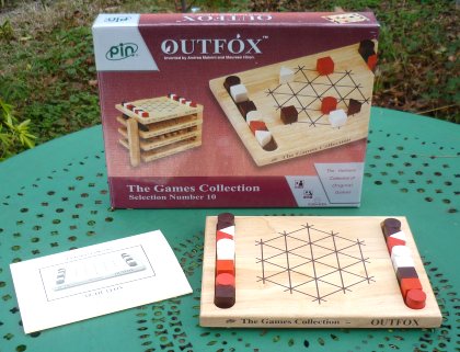 Outfox est un jeu combinatoire pour deux ou trois joueurs. Les pièces appartiennent à tout le monde. Elles sont introduites au fur et à mesure sur le tablier qui est vide au départ. Le but est de parvenir à un alignement parfait : soit trois pièces de formes différentes mais de même couleur, soit trois pièces de même forme, mais de couleurs différentes. La difficulté réside dans le tour du joueur, qui est composé de deux phases. D'abord, il doit introduire une pièce, puis il doit déplacer un pion voisin de celui qu'il vient d'entrer. Un alignement peut ainsi être immédiatement détruit, si l'on est contraint de déplacer l'une des pièces qui le compose.