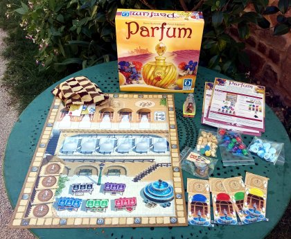 Ce n'est pas un hasard si les mécanismes de Parfum rappellent ceux de Fresco : les deux jeux ont les mêmes auteurs. De fait, Parfum peut être considéré comme une version allégée de Fresco. Les joueurs rivalisent pour récupérer les fragrances les plus recherchées, les distiller puis les assembler pour former des parfums qu'ils pourront vendre à une clientèle raffinée. Un peu de chance aux dés vous aidera mais une bonne tactique est indispensable pour gagner. Agréable et rapidement expliqué.