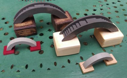 Les ponts ont été assemblés avec des pièces découpées au laser dans du MDF de 3 mm, au FabLab de Cluny.