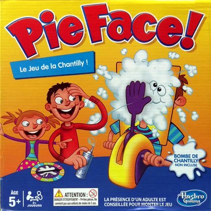 Pie Face ! est un jeu de roulette russe où la balle du pistolet est remplacée par une dose de crème Chantilly (non fournie dans la boîte). Le jeu peut remplacer Gare au splash quand les frimas arrivent.