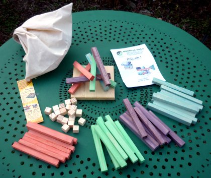Pilé-oh ! fait un peu penser à Tasso, mais les deux sont très différents. Ici, il s'agit de créer des superpositions de trois de ses bâtons, de sorte qu'un clou virtuel puisse les traverser tous trois sans toucher aucun autre clou adverse. Les règles stipulent qu'il est interdit de pousser des bâtons déjà posés, mais une pose résulte souvent en un déplacement, depuis qu'Isaac Newton a inventé la gravité. Il convient donc de bien s'entendre au préalable sur ce qui est autorisé ou interdit. De même, la notion d'alignement peut être sujette à discussion. Mais, après tout, discuter c'est déjà un peu jouer, non ? |