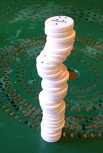 Curieux mélange de dominos et de Badaboum !, Pilomino est un jeu de défausse et d'équilibre aux règles résolument simples. La difficulté, ce sont les joueurs qui la créent. Si chacun pose sagement ses pièces bien au-dessus les unes des autres, la partie se termine dès qu'un joueur est parvenu à se débarrasser de tous ses pions. C'est alors celui qui avait au départ la meilleure distribution qui gagne, mais ce n'est pas très drôle. Il est plus amusant de corser le jeu en décalant un peu les pièces lors de la pose, pour rendre la pile la plus instable possible, sans la faire tomber soi-même. L'épaisseur de chaque pièce est légèrement différente d'un côté à l'autre : les deux faces ne sont pas tout à fait parallèles, sans que l'angle ne soit cependant très prononcé. On peut bien sûr jouer de cette caractéristique.