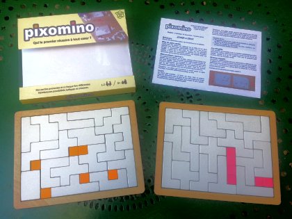 Pixomino, de Sylvain Ménager, met en œuvre des hexaminos Tout est dans le sous-titre : « Qui le premier réussira à tout caser ? » Plusieurs modes de jeu sont possibles. Après s'être réparti les pièces, savamment ou aléatoirement, les joueurs tentent de faire tenir les dix-sept hexaminos reçus dans le tableau de 9 × 12 carrés. Il est donc possible de laisser six cases libres, où viendront se loger les petits carrés. Et pourtant, les joueurs peinent à tout faire rentrer. Les plus expérimentés pourront subir un handicap, comme la pose préalable d'un ou plusieurs carrés imposés. Les amateurs de pavage vont adorer !