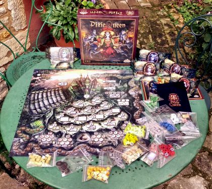 On n'est pas là pour rigoler ! La reine Pixie exige son tribut : du miel, du pain ou des pommes, on ne sait jamais à l'avance, mais elle ne refuse pas non plus l'argent et l'or ! Nous, pauvres Pixies, devons crapahuter pour la satisfaire en allant chaparder ce qu'elle demande pour rivaliser avec nos adversaires en flatteries et bassesses. Les plus flagorneurs gagneront de recevoir un peu moins de coups de fouets que les autres. Ils éviteront ainsi d'être envoyés comme esclaves à la mine. Il est agréable de voir un jeu au thème aussi fort, où l'on peut choisir comme action d'infliger des coups de fouets aux adversaires, le tout dans une franche bonne humeur. Mais au-delà de l'ambiance, c'est à un réel bon jeu aux mécanismes subtils et variés qu'on a affaire. La qualité des composants est aussi au rendez-vous, ce qui ne gâche rien. Pixie Queen est, il me semble, le premier jeu publié par Game Brewer. On a hâte de voir ce qu'ils vont nous brasser par la suite !
