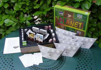 Si, comme moi, vous avez aimé Expos - Art, Business & Collections, vous adorerez Planet - Atlas, Business & Collections qui reprend les mêmes mécanismes, mais sur le thème des pays du monde. Vingt-et-un pays sont représentés par six photos choisies parmi neuf thèmes : site naturel, architecture, tradition et artisanat, gastronomie, capitale, faune et flore, musique et danse, drapeau, géographie. Vous essayez de collectionner les cartes par pays ou par thème. Ceux qui ont de bonnes connaissances sont légèrement favorisés, car ils n'achèteront pas « pour rien » une carte qui n'entre dans aucune des collections qu'ils visent. Planet - Atlas, Business & Collections est excellent jeu familial, au bons sens du terme, pour se promener autour du monde de manière intelligente et ludique, sans tomber dans les affres du jeu « pédagogique » et ennuyeux. Planet - Atlas, Business & Collections est difficile à dénicher, mais mérite que vous vous décarcassiez un peu pour le trouver. Vous ne devriez pas être déçu. |