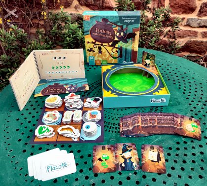 Trop souvent, placer le qualificatif « éducatif » à la suite du nom « jeu » en altère gravement le sens. Certes, on fait plaisir aux parents qui peuvent imaginer que leur enfant, grâce à ce "jeu", deviendra savant et millionnaire (ou professeur de mathématiques). mais le plus souvent, « éducatif » signifie plutôt « ennuyeux » (pour rester poli). Heureusement, quelques éditeurs ont su concilier dans leurs jeux les aspects didactiques et ludiques. C'est le cas avec Potions mathématiques, un des premiers jeux de l'éditeur québécois Placote. Certes, on va dénombrer et commencer à compter en même temps qu'on joue, mais on va le faire dans la bonne humeur en manipulant des chaussettes qui puent ou des bananes pourries pour réaliser des potions improbables. Une réussite.