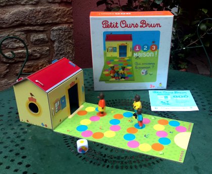 Petit Ours Brun - 1 2 3 maison ! est un tout premier jeu, idéalement conçu pour maman, papa et leur fiston (Petite Ourse Brune n'existe pas ?). Il s'agit d'une course au but vers la maison ; le dé indique vers quelle case on peut avancer.