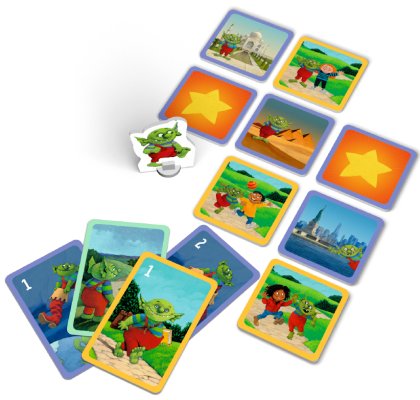Parmi les 25 cartes disposées au centre de la table en tableau de 5 × 5 cartes, se cachent trois voyages et 3 groupes d'amis. Le Petit Ogre à l’aventure est un jeu coopératif où tous les joueurs s'entraident pour retrouver les six cartes spéciales. À son tour, le joueur actif défausse une de ses cartes et déplace le Petit Ogre d'une à trois cases pour atteindre une carte qui n'a pas encore été découverte. Mais attention, le nombre de cartes est limité et si on retourne plusieurs fois une carte sans rien au verso, on perd du temps et peut-être la partie si la pioche s'épuise avant que l'objectif ne soit atteint.