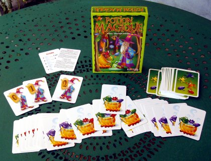 pour ceux qui maîtrisent les puissances de 3 Pour chaque carte proposée par l'apprenti, le maître répond en indiquant le nombre d'ingrédients corrects : zéro, un ou deux. Si les trois éléments sont bons, la manche est terminée et le score est déterminé par le nombre de cartes jouées. Une seule fausse note dans le jeu : pour que la potion soit réussie, ce n'est évidemment pas une grenouille qu'il faut y plonger, mais bien entendu un crapaud ! |