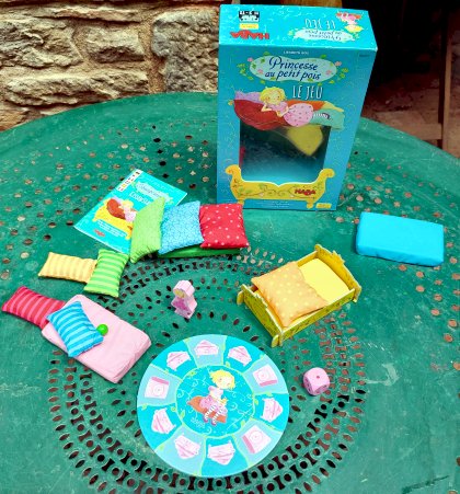 Tous les joueurs participent à faire le lit de la Princesse au petit pois. Deux modes de jeu sont proposés : l'un coopératif, l'autre compétitif. Dans les deux cas, il s'agit d'empiler proprement matelas, édredons et oreillers sans que la pile se renverse. On peut regretter que le jeu ne reflète en rien le conte. Dans celui-ci, la princesse est tellement sensible qu'elle est troublée dans son sommeil par un petit pois oublié sous une énorme pile de matelas. dans le jeu, le petit pois a plutôt les proportions d'une boule de bowling et on doute qu'elle trouve le sommeil facilement !