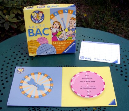 Enfin la règle consiste, bien entendu, à trouver rapidement des mots qui commencent par la lettre tirée au dé. Les plus grands joueront à Scattergories, qui utilise exactement le même principe. 2002 : édition Les IncollablesRien de bien nouveau, si ce n'est la présentation : les cartes de thème sont des disques. On jette un dé pour déterminer le thème sur la carte. Les thèmes sont un peu nouveaux, mais loin de l'originalité de ceux de Bac à la carte.