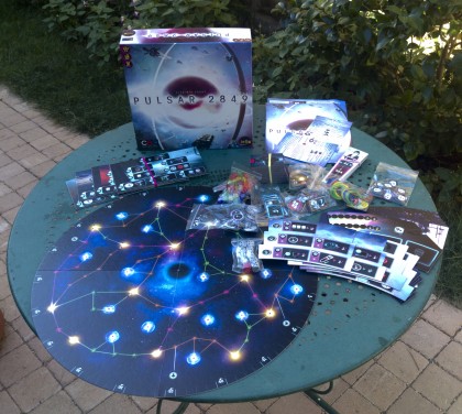 Pulsar 2849 est de ces jeux où il existe tellement de manières de gagner des points de victoire qu'il faudra de nombreuses parties pour explorer le jeu (et les galaxies avoisinantes par la même occasion). Malgré une apparente complexité, le jeu est assez facile à appréhender, surtout si l'on trouve une bonne âme pour vous l'expliquer. On apprécie les voyages intergalactiques qui permettent de récupérer les ressources des planètes tout en apprivoisant les pulsars. Une astuce au passage : le jeu s'appelle Pulsar 2849 ; même s'il existe de nombreuses actions permettant de marquer des points, il ne faut pas négliger la visite des pulsars pour en marquer un maximum. Ne jouez par à Pulsar 2849 si vous comptez n'en faire que deux ou trois parties. Vous n'auriez pas le temps d'en explorer les nombreuses facettes. Si, en revanche, vous êtes de ceux qui apprécient de jouer plusieurs fois à un bon jeu pour en explorer les diverses facettes, alors vous avez ici un jeu que vous ne regretterez pas d'avoir ajouté à votre étagère.