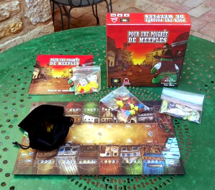 C'est souvent en faisant un nouveau rapprochement de deux mécanismes ou principes ludiques que l'on crée les jeux les plus originaux. Pour une poignée de meeples est un jeu de semailles agrémenté d'un mécanisme d'affectation de travailleurs. En gros, vous prélevez les meeples qui se trouvent sur une case et vous les égrenez sur les cases suivantes, à droite ou à gauche, en essayant de mettre les différents personnages là où ils vous seront le plus profitable. Chaque action est assez simple et, rapidement, on n'a plus besoin de se référer à la règle du jeu. L'idée est intéressante et, si on veut réfléchir un peu, les choix sont parfois difficiles. Quelle case prélever ? Dans quel sens distribuer ? Quels pions sur quelle cases ? Il peut être utile, avec certains joueurs, de se munir d'un sablier ou d'un gourdin.