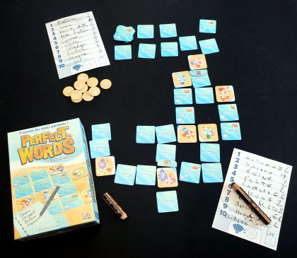 Perfect Words évite ce travers. Tous les joueurs autour de la table se retrouvent facilement dans une règle simple demandant d'associer des mots pour faire deviner des mots, des personnes, des expressions ou des titres. Quand il faut trouver ce qui se cache derrière « Voiture » + « Jaune », chacun repère bien qu'il s'agit de la voiture du facteur. Seuls quelques esprits retors iront imaginer qu'on fait référence à la Coccinelle jaune du voisin de la tante Esther dans les années 60 à Bourges. Et comme il s'agit d'un jeu coopératif, il faut bien éviter de partir sur des chemins solitaires. La partie dure quelques dizaines de minutes et on est généralement éblouis de voir combien on a tous les mêmes références. Heureusement l'éditeur a pris soin de différencier les mots faciles à associer de ceux plus difficiles. Si l'on veut corser la partie, il suffit d'augmenter la part de mots difficiles dans les 40 cartes en jeu. Et pour la rendre plus abordable, on diminue la part des mots difficiles.