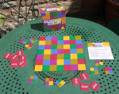 À première apparence, Quadro Color semble être un énième jeu de dominos carrés. La règle, cependant, diffère considérablement de celles que l'on trouve généralement associée à ce type de matériel puisque nous avons affaire ici à un jeu de rapidité. Chaque joueur reçoit 3 cartons face cachée et tout le monde les révèle en même temps. Le premier qui parvient alors à placer ses trois dominos correctement sur la grille colorée gagne la manche. Bien entendu, chaque pièce n'a qu'une seule place !