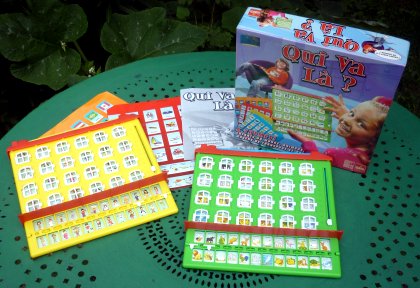 On voit donc d'évidence qu'il s'agit d'un jeu différent. L'intérêt de cette édition, c'est qu'elle comporte deux planches recto-verso et donc quatre thèmes possibles : transports, drapeaux, enfants du monde et animaux. La règle et le matériel mettent en valeur la variante souvent oubliée et pourtant très intéressante qui consiste à rechercher deux images au lieu d'une seule. On est souvent obligé de s'aider d'un papier et d'un crayon. |