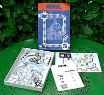 La partie se termine dès qu'un joueur raccorde toutes ses voies à des pièces terminales, gares ou jonctions. On compte alors les points, et le gagnant n'est pas nécessairement celui qui a terminé le premier. Rail est une curiosité intéressante, dotée d'un matériel minimaliste. Il est paru chez Ludonirique, un éditeur de la belle époque, auquel on doit également Ascension, du même auteur. |