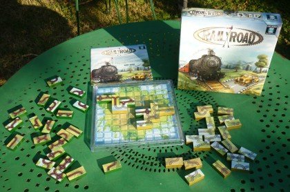 Un amateur de jeux de connexion comme moi ne pouvait qu'être attiré par Railroad ! La déception n'en est que plus grande. Car Railroad n'est pas un jeu de connexion mais plutôt un jeu de pavage simpliste, vaguement inspiré de Cathedral. Un joueur pose des routes, l'autre des rails. On commence par poser chacun un domino. Les pièces suivantes doivent être en contact avec au moins un domino déjà posé. Il n'y a aucune autre contrainte. Il est ainsi possible de prolonger une route par des rails ou rien du tout. Il suffit qu'un des dessins du domino continue un chemin, rail ou route, cela n'a aucune importance. On obtient donc rapidement des tracés totalement incohérents, mais ça ne semble pas gêner les concepteurs du jeu. L'astuce (si l'on peut dire) consiste à tracer une route homogène entre deux bords du tablier, soit sur un côté, soit sur deux côtés adjacents. Le territoire ainsi délimité devient exclusif : les éventuels dominos adverses en sont retirés et on peut soi-même en placer autant qu'on le veut. Les dominos ayant tous la même forme, la partie remplissage ne présente guère d'intérêt. Sans intérêt. Ressortez plutôt votre Cathedral !