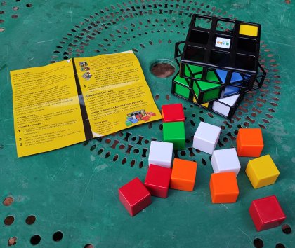 Ça ressemble à un Rubik’s Cube, mais c'est en fait un jeu d'alignement pour 2 à 6 joueurs. Au départ, le cube est vide. Chaque joueur se voit attribuer une ou plusieurs couleurs selon le nombre de joueurs. Chaque joueur à tour de rôle peut soit ajouter un cube, soit tourner de 90° un des trois étages, soit retourner à 180° le cube. Lors de ces deux dernières opérations, il est possible (et souvent souhaitable) qu'un ou plusieurs cubes se déplacent. Le but est d'aligner trois cubes de sa couleur, en évitant de faire gagner un autre joueur par un mouvement malhabile.