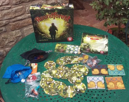 Roundforest est un jeu de collecte plutôt intelligent. Les aventuriers parcourent la forêt en essayant de récupérer les items qui seront nécessaires à la victoire. Le jeu fonctionne bien, mais… Le souci, ce sont les multiples manipulations à effectuer à son tour de jeu. Après avoir réalisé l'action de son tour, le joueur doit tourner la tuile où se trouve son pion. S'il a changé de tuile, il doit garnir celle qu'il a quittée d'un pion tiré du sac, puis il doit exécuter une action qui dépend de la tuile où il se trouve. Si on ajoute à cela les multiples paramètres à prendre en compte, il n'est pas rare qu'un joueur oublie de faire telle ou telle manipulation obligatoire, ce qui peut fausser le cours du jeu si on s'en aperçoit un peu tard. En réalité, Roundforest aurait été un très bon jeu familial s'il avait été réalisé sur un support informatique et non comme jeu en boîte. Toutes les actions automatiques auraient été réalisées par la machine, ce qui aurait libéré les joueurs de préoccupations accessoires à l'objet du jeu. En résumé, si tous les joueurs autour de la table sont extrêmement attentifs, Roundforest peut très bien tourner. Mais si un joueur est un peu tête en l'air, la partie peut tourner au vinaigre. À essayer avant d'adopter.
