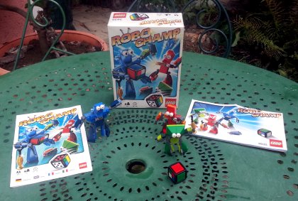 Au gré des lancers de dés, vous prenez des éléments de robots, vous en échangez ou vous en volez à un autre joueur, dans le but d'assembler le premier un robot unicolore de six éléments. Rien de bien affriolant dans ce Robo Champ auquel on ne rejouera pas souvent et dont les pièces pourront utilement rejoindre la caisse de briques…