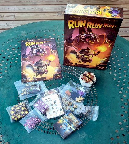 Si vous avez déjà eu l'occasion d'explorer les couloirs d'une pyramide égyptienne, vous savez qu'ils sont remplis de momies très méchantes et qu'il ne faut pas oublier d'emporter pas mal de torches. Run Run Run ! vous propose de (re)vivre la découverte et l'exploration d'une pyramide tous ensemble, en mode coopératif. Les cartes qui permettent de créer les couloirs et donc de trouver la sortie sont aussi des monnaies d'échange. Vous devrez donc choisir en permanence entre jouer ces cartes ou les défausser pour obtenir des avantages. N'oubliez pas non plus d'avoir un peu de chance aux dés ! Run Run Run ! est un jeu pour toute la famille, agréablement illustré, qui se rejoue avec plaisir que l'on gagne ou que l'on perde.