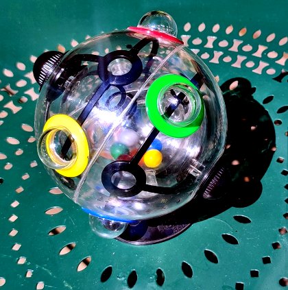 Même nom, mêmes couleurs, mais c'est tout. Le Rubik’s 360 n'est pas un casse-tête logique comme ses aînés. La dextérité et la chance entrent en jeu. Pour faire rentrer les petites billes dans les alvéoles qui permettront de les acheminer ensuite vers leur emplacement définitif, la seule méthode est de secouer furieusement la boule en espérant qu'une bille finisse par s'y loger. Difficile mais pas vraiment intéressant.