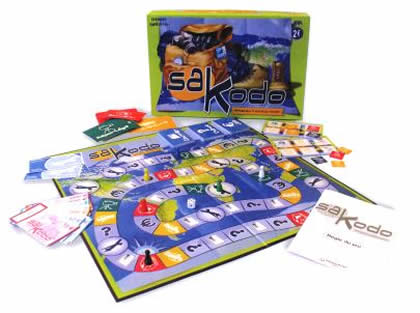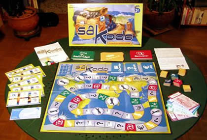 Le Jeu du routard, édité en 2002 chez MB/Hasbro, est signé par Cécile Balaÿ et Isabelle Privé. Il s'agit d'un jeu de parcours assez classique, qui présente toutefois quelques caractéristiques intéressantes. Il est d'autant plus dommage que le design soit triste à mourir, avec des couleurs froides et un tablier sans aucune gaieté. On joue en deux étapes. Lors de la première, chacun doit préparer son voyage en réalisant les formalités nécessaires, en achetant un appareil photo, des billets de train, des chèques hébergement etc. Puis, pendant la seconde phase, chacun avance à son rythme, en essayant de parvenir sur les cases qui l'intéressent, où il pourra vivre des aventures, acheter des souvenirs, faire un petit job rémunérateur, faire un reportage photo etc. Les manipulations d'argent sont constantes et, il faut le dire, un peu lassantes. Mais la mécanique de déplacement est assez astucieuse et n'est pas sans rappeler un peu celle du jeu mythique : Le Lièvre et la Tortue. On peut avancer doucement et pour pas cher ou beaucoup plus vite, mais c'est alors coûteux. Une astuce consiste à terminer son déplacement sur un pion adverse, qui est alors contraint de vous transporter. Ce transport, appelé Stop dans le jeu, ne ressemble pas vraiment aux souvenirs que j'ai du stop : ici, on s'impose sans que l'autre n'ait le droit de dire quoi que ce soit. Le Jeu du routard n'est donc pas celui des débuts du guide, mais plutôt celui des Bobos actuels, qui partent à l'aventure avec les travellers chèques de Papa. Qu'importe, le jeu conçu pour un public familial est certainement beaucoup plus intéressant que les jeux habituels de ce type. Bien que le hasard soit important, la part de décision est non négligeable et le jeu, s'il intéresse surtout les enfants, ne déplaira pas forcément à leurs parents. C'est du moins ce que j'ai pu constater dans les parties que j'en ai faites. 2006 : SakodoSakodo est la seconde version du Jeu du routard, paru chez MB en 2002. Le jeu a gagné sur tous les tableaux. Il est plus enjoué et plus rapide : le temps de jeu a été réduit de moitié en éliminant les phases inutiles.