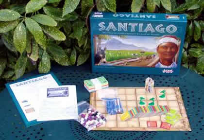 Santiago est pour moi l'un des meilleurs jeux apparus au salon d'Essen 2003. Et pourtant, le jeu comporte des phases d'enchères et les enchères, je commence un peu à en souper tant elles ont tendance, chez certains auteurs, à remplacer l'imagination.