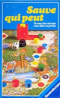 Sauve qui peut est un jeu de hasard et de raisonnement. Un petit parcours, où deux pions pour chaque joueur essayent de parvenir au bout. Deux originalités pas vraiment renversantes : un mécanisme qui retient un pion prisonnier, et une boucle dans le circuit, où un pion peut bloquer le passage aux autres couleurs. Clairement pour les plus jeunes joueurs. |