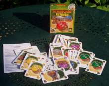 Ici, il s'agit de collectionner les escargots pour former des séries de 5 cartes. Lorsque c'est le cas, on ramasse la série, et on prend une carte à chacun des joueurs qui a commencé la même collection. D'où le dilemme : collectionner une couleur que personne ne collectionne déjà présente l'avantage de faire courir moins de risque, mais aussi l'inconvénient de rapporter moins. Le jeu est essentiellement tactique, extrêmement interactif, et gagne donc à être joué à 4 ou 5 joueurs. Le thème est bien rendu, car faire une collection complète prend au moins cinq tours de jeux… quand tout se passe bien. La tension est identique à celle ressentie dans les courses gastérophiles. Dans un style assez proche, vous pouvez aussi découvrir Minestrone. |