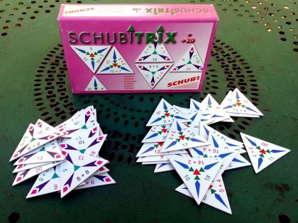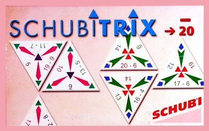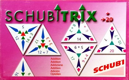 Schubitrix est une série de jeux didactiques basés sur les mécanismes des dominos triangulaires comme les célèbres Triominos. Le but est d'utiliser le jeu pour faciliter les apprentissages. De très nombreux modèles sont proposés par l'éditeur , sur le thème du calcul mais aussi de la logique, de l'heure, de l'orthographe, etc. 1996 : Schubitrix - Addition jusqu’à 20