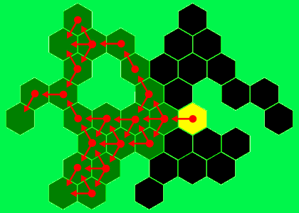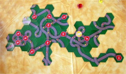 C'est donc à un jeu de connexion mêlé de chaos que nous assistons avec un certain plaisir. Sur son site, games.bezier.com/, l'auteur propose des variantes qui atténuent un peu le hasard, car il se trouve toujours des joueurs qui n'aiment pas le hasard. Variante DédéAu contraire, l'Escale à jeux a le plaisir de vous proposer une variante qui accentue le chaos, tout en offrant la possibilité d'une certaine maîtrise de ce chaos. Dans la règle originale, le séisme se propage en ligne droite dans celle des 8 directions qui contient le plus de tuiles. Sans