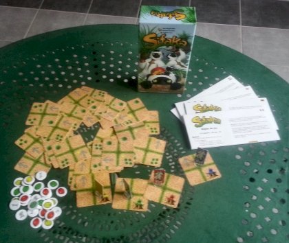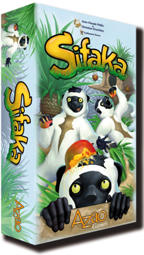Les sifakas sont des lémuriens vivant à Madagascar. Dans Sifaka, vous incarnez l'un d'entre eux et votre but est de manger les plus succulentes mangues. Pour cela, vous allez déplacer votre pion en respectant des contraintes de distance et de direction. La carte que vous posez agrandit le terrain. Les palmiers que vous recouvrez indiquent de combien de cases vous devez vous déplacer. Si vous recouvrez une ou plusieurs flèches, vous devrez tourner avant, durant ou après votre déplacement. Le mécanisme de cases influentes est ici mis en œuvre de manière originale et intéressante. Belle idée. |