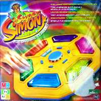Super Simon est sous-titré « the original classic » (je ne traduirais pas, un peu de recherche dans le dictionnaire vous fera du bien). C'EST UNE VILÉNIE ! Le vrai Simon est rond, et noir, pas hexagonal et jaune ! On ne nous la fera pas. Mais si par malheur vous n'avez pas conservé de Simon de votre enfance ou de celle de vos parents, je fermerais pour une fois les yeux sur l'acquisition de cette pâle dérivation. Mais que fait le ministère des monuments historiques ?